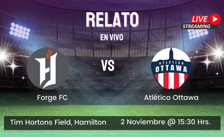 ¡Este 2 de noviembre no te pierdas el relato en español del partido entre Atlético Ottawa y Forge FC! La transmisión comienza a las 3:30 p.m. a través de futbol.free24 en YouTube. LINK https://www.youtube.com/live/0tUbZQ59ZbI
