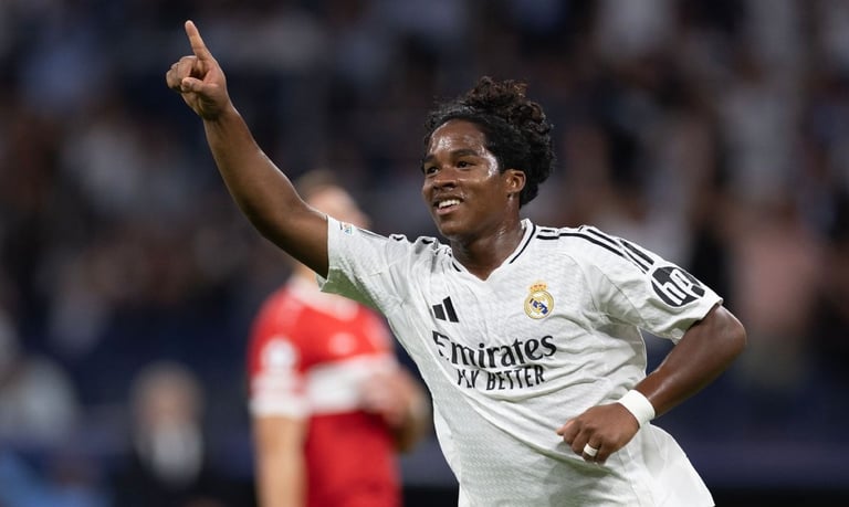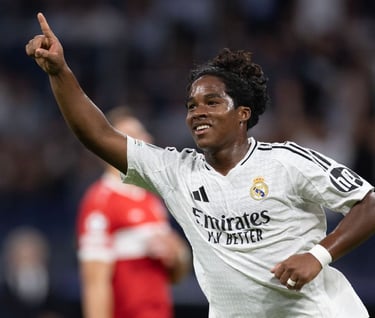 At just 18 years old, Endrick is already turning heads, scoring his first Champions League goal with confidence, opting to shoot instead of passing to Vinícius Jr. or Mbappé. Off the field, he recently made headlines by getting married in an impromptu weekend ceremony. Full of talent and a fearless spirit, Endrick is living life to the fullest—both on and off the pitch!