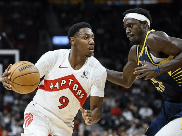 Deportes Canada - Los Raptors consiguieron un respiro con su tercera victoria de la temporada tras 15 partidos, todas ellas en casa. El oriundo de Ontario, RJ Barrett, logró un récord personal con 39 puntos, mientras que Jakob Poeltl sumó su tercer doble-doble consecutivo. A pesar de perder el balón 23 veces, lo que resultó en 24 puntos para Indiana, Toronto logró imponerse en el marcador.