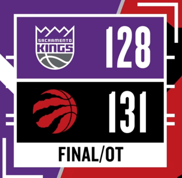 Deportes Canada - Ayer, los Raptors de Toronto vencieron a los Sacramento Kings por dos puntos en tiempo extra, poniendo fin a una racha de cuatro derrotas consecutivas y rindiendo un emotivo homenaje a Vince Carter.